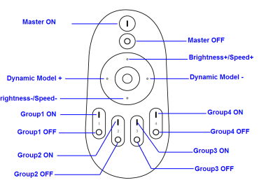 3、Group operate instruction: if there is A and B two piece controller receiver, first to Power the receiver A, then press the “Group 1 ON” button for five times then the led will be flash, this means receiver A is controlled by Group 1. Second to power the receiver B,press the “Group 2 ON” button for five times, than the led will be flash, this means the Receiver B is controlled by Group 2. When press the “Master ON” button, Receiver A and B are turn on at the same time, press the “Master OFF” button, Receiver A and B are turn off at the same time , A and B receiver are changing the same when press the touch color wheel . IF you want to controller receiver A/B separately, please press the “Group 1 ON” button first, than you can adjust Receiver A color temperature or turn ON/OFF receiver A . Meanwhile, Group 2/3/4 are the same.