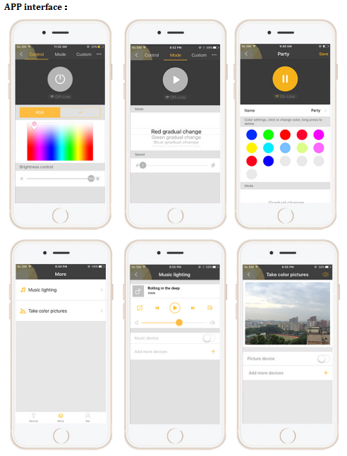 - Music mode*! listen to your music through your microphone and change the lights to the beat!