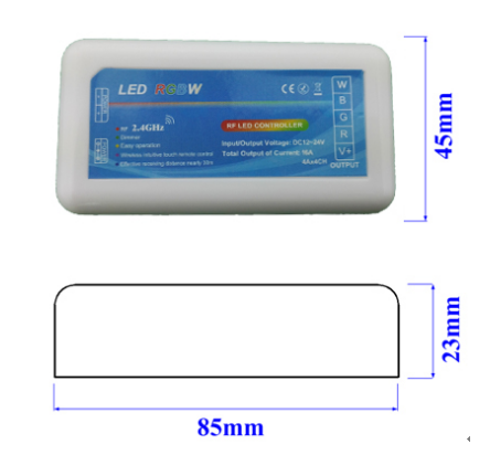 This 4 zone 2.4G RF remote RGB led controller adopt the most advance PWM control technology, can control all kinds of 3 channel (common anode) LED lights. Such as LED module, led strip, led control box, led source, etc. This controller is with indicating light and power off memory function, next time to used it, will start with the model it save. Easy connection and simple to used is the representative advantages of this controller. User can choose different changing mode, adjust the speed and brightness, turn on/off by the remote control according to their preference .