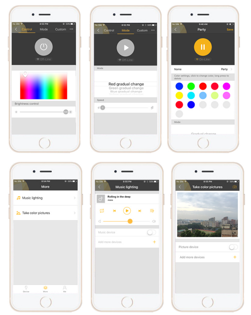 - Music mode*! listen to your music through your microphone and change the lights to the beat!