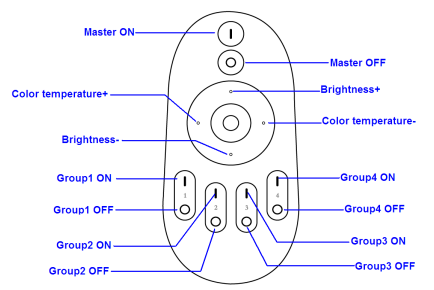 This 4 zone 2.4G RF color temperature controller adopt the press button RF wireless remote control, can adjust to change the lights color temperature according to the customer’s preference. 2.4G frequency make it more stable and more strong anti-jamming capability to use. Besides, one remote can control 4 groups of light independently, make it realize the one-to-many manipulation control.