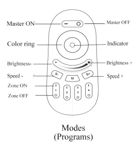 This 4 zone 2.4G RF RGBW Controller is the touch button RF wireless remote controller, the most advanced PWM (pulse width modulation) control technology have been adopted. It can be installed & used easily, plenty modes can be selected, speed & brightness can be adjusted with the remote. It also has memory function because we inside the memory chip on the PCB. With all these high functions, we still make it so tiny, and make it more economical and practical. It’s mainly used to control all kinds of constant voltage led lights, such as: LED source, LED strips, led wall washer, wall Glass curtain lights, etc.