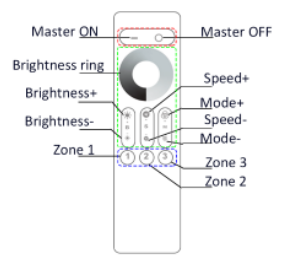 Remark:A remote control can operate 3 groups of controllers at the same time. each group of controllers can be composed of many controllers, such as 30 controller divided the 3 groups, then, each group control can remote 10 controllers, to achieve synchronously adjustable brightness effect.